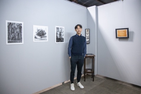 Caleb的 Banyan Tree細葉榕,特別的是榕樹與香港命運的連結; 他特別多媒體影象拍攝榕樹,在展場可以掃QR code,用手機看這個多媒體影像。