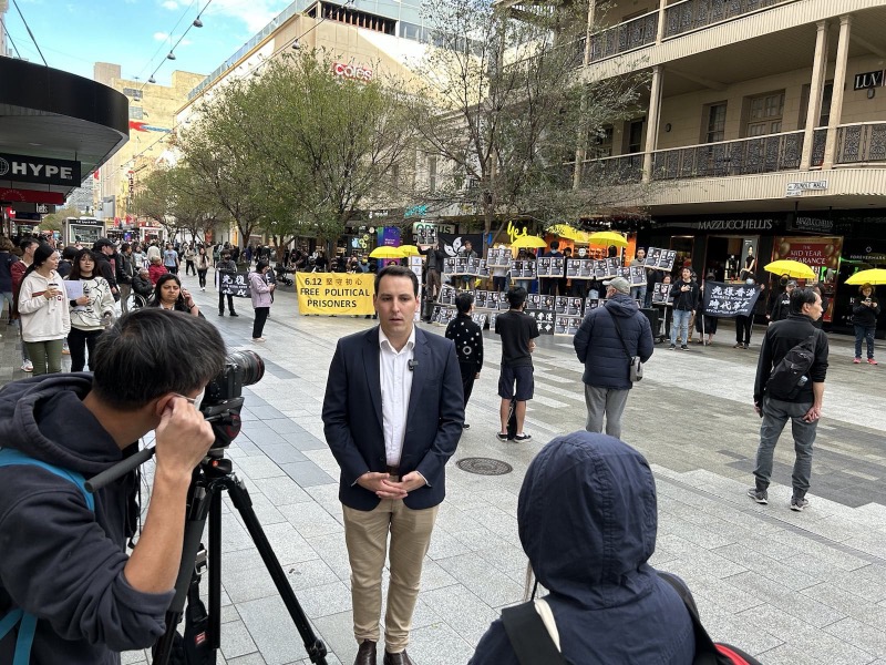 港人組織Adelaide Stand With Hong Kong這次的集會主題是要求釋放政治犯,並特別製作了現正被囚禁的50多位香港民主鬥士的海報,向當地民眾講述香港政府以法律手段嚴厲打壓異見者的情況,並強調在國安法之下,對於發出異議聲音的香港市民的拘捕從未停止。